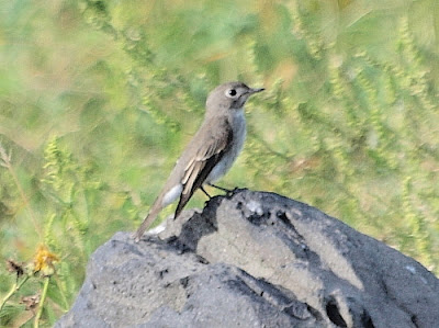 Out by 5.20am. Usual walk to the Dragons Pool in fine, warm weather with a light WNW wind. After breakfast we called in at the netting site and the highlight was a Middendorff's Grasshopper Warbler in the hand with other highlights being Arctic Warblers, and several Blue and White Flycatchers.